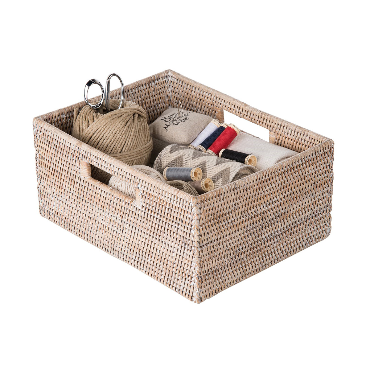 HNH1407-White Washed Rattan Storage Basket