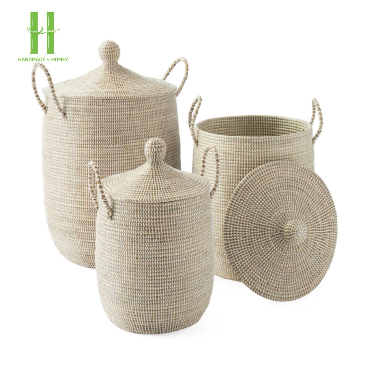 X04-Natural Set Seagrass Storage Basket with Handles