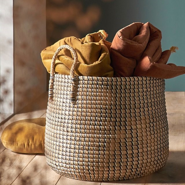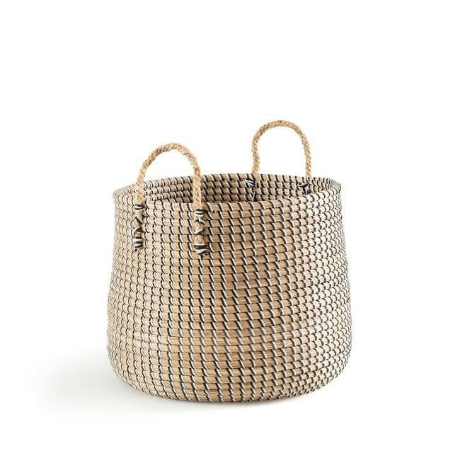 X03-Natural Seagrass Coiled Storage Basket with Rope Handles